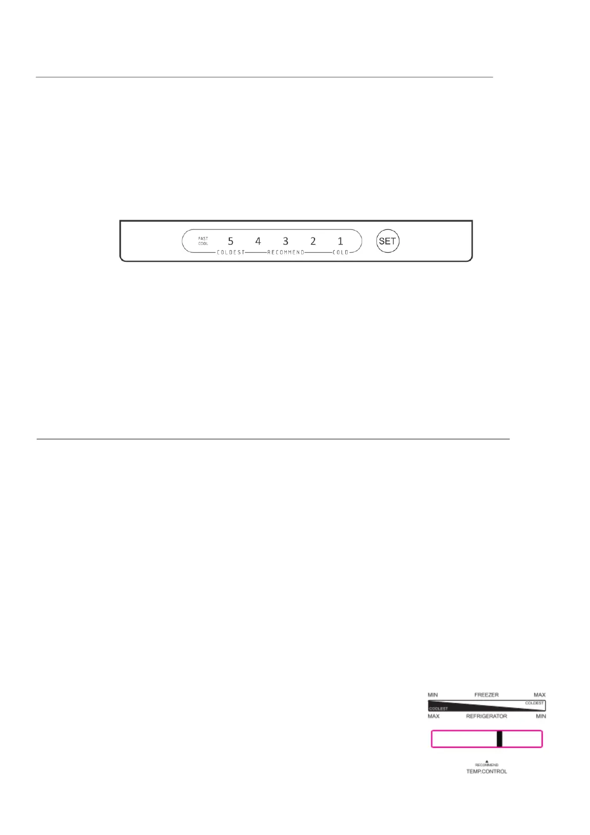 The temperature adjustment cycles in the following mode: 5→4→3→2→1→FAST COOL