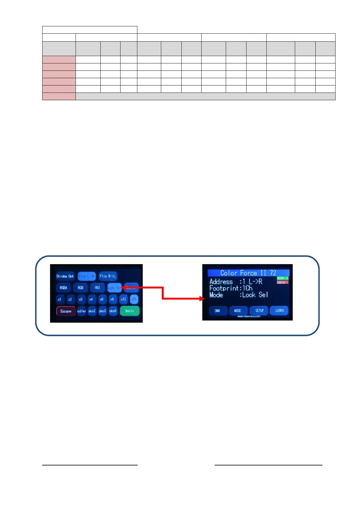 The Look Sel mode assigns 1 DMX channel to access the saved Looks.