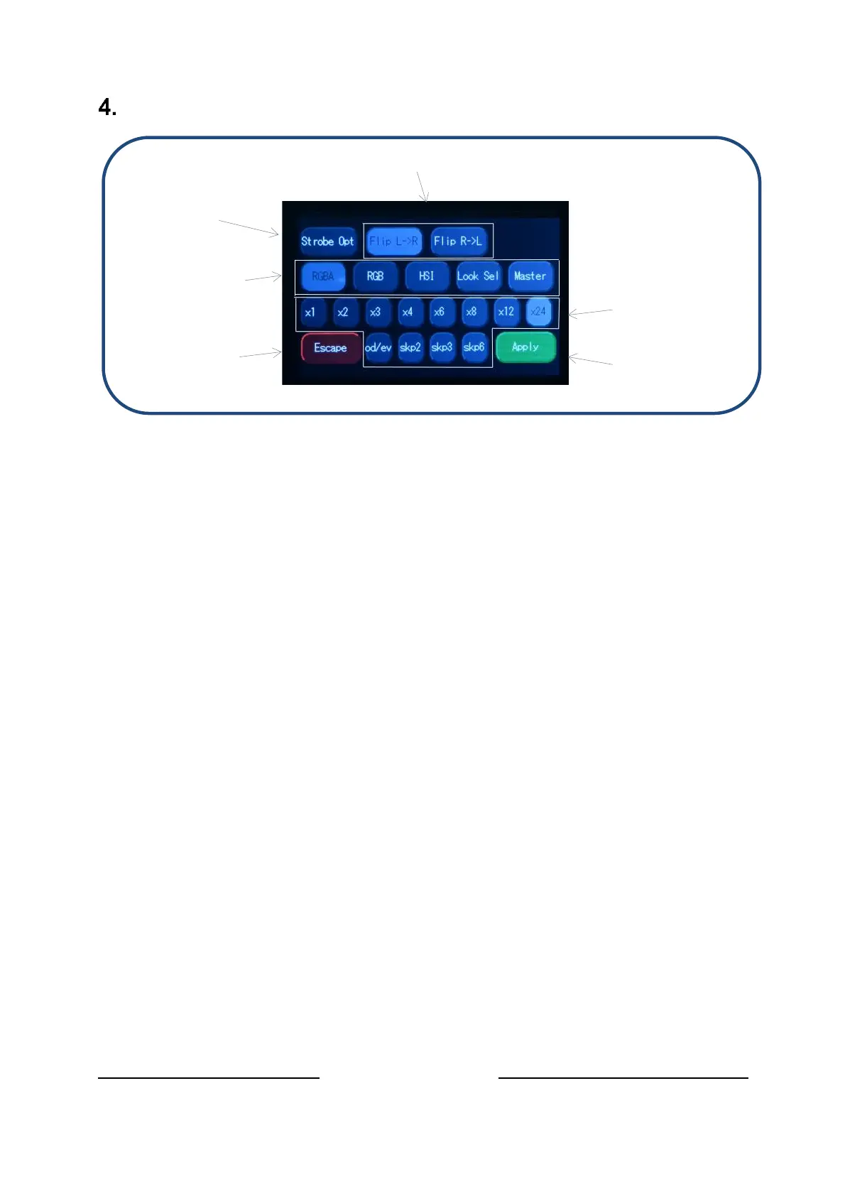 This mode assigns 4 DMX channels to set Red, Green, Blue and Amber levels in each cell, or group of