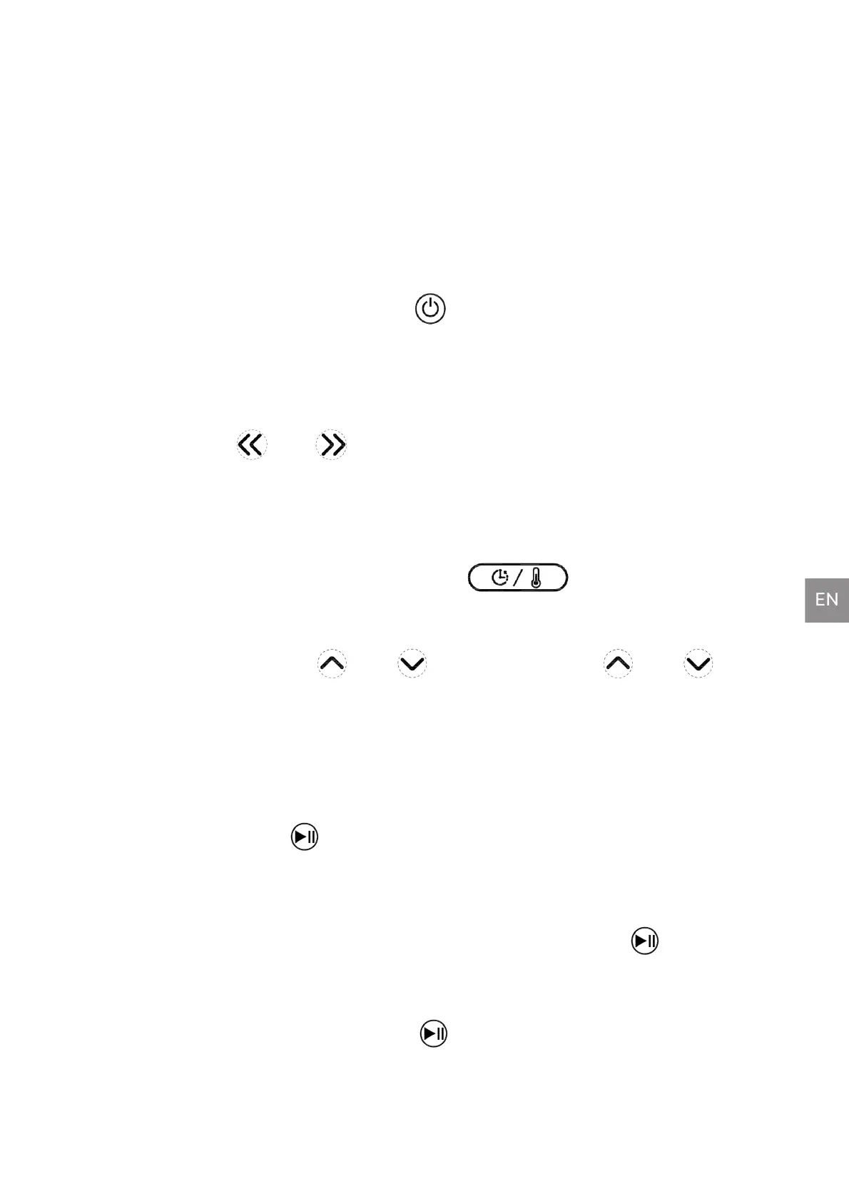 temperature or time by “ ” or “ ”. Hold and press “ ” or “ ” to