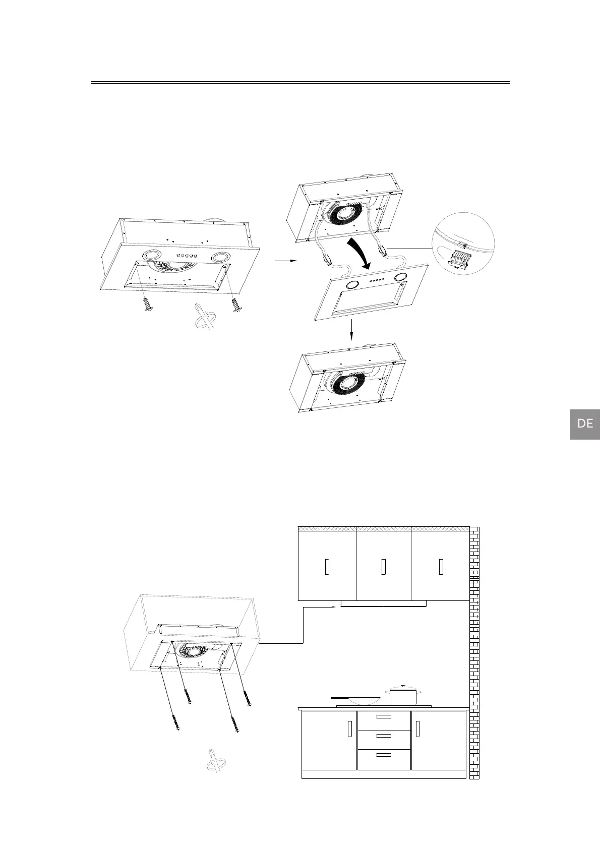 6) Setzen Sie die Dunstabzugshaube in das rechteckige Loch des