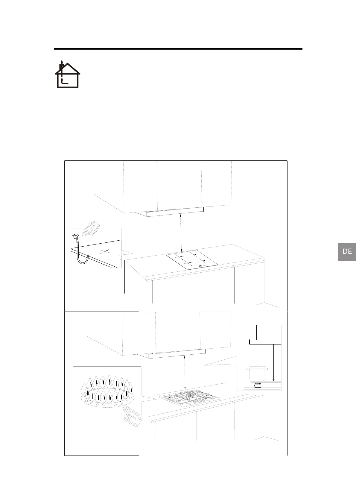 Erforderliche Höhe über Gaskochfeld: 750 mm;