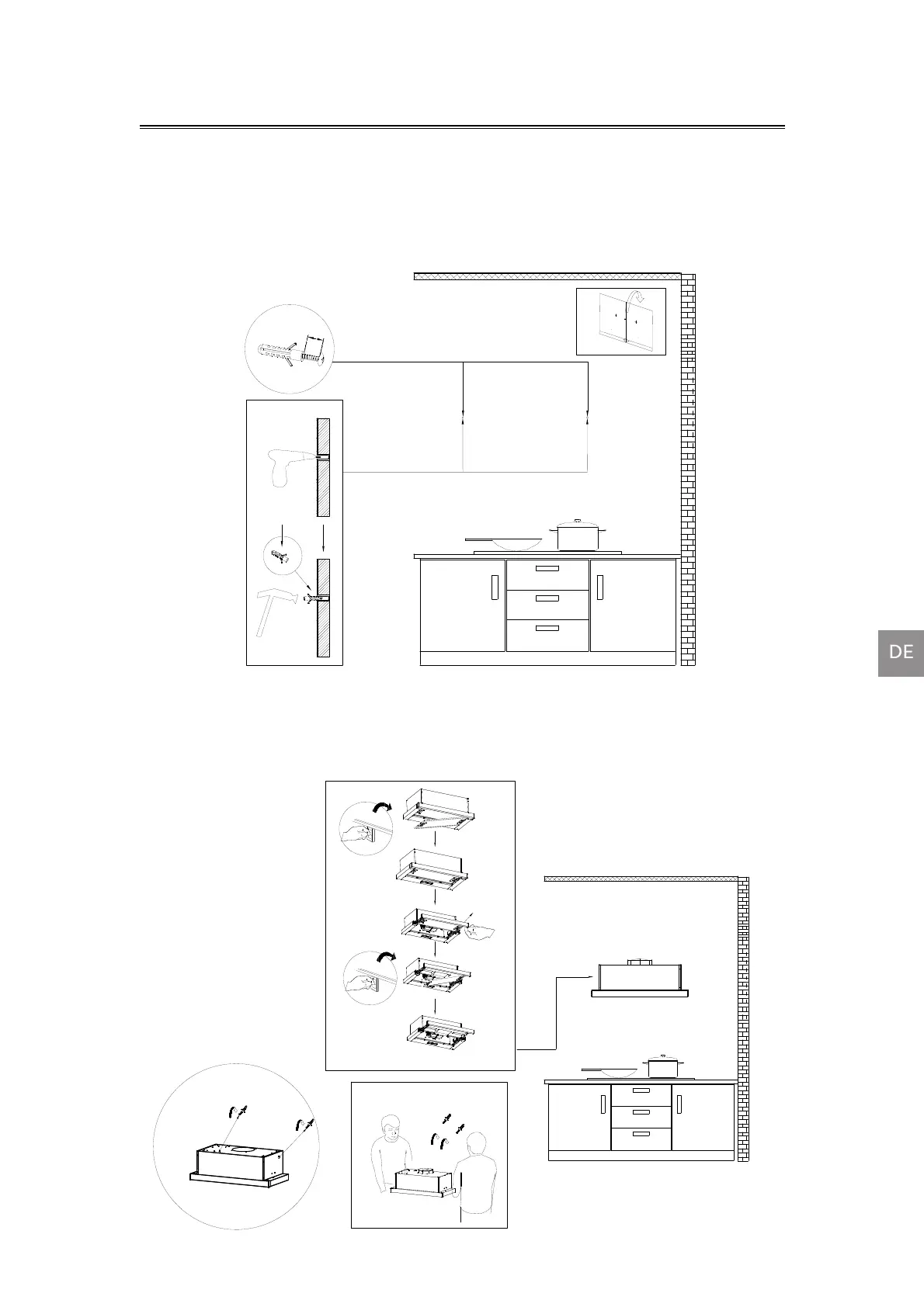 Sie den anderen Fettfilter. Stecken Sie dann die Dunstabzugshaube auf
