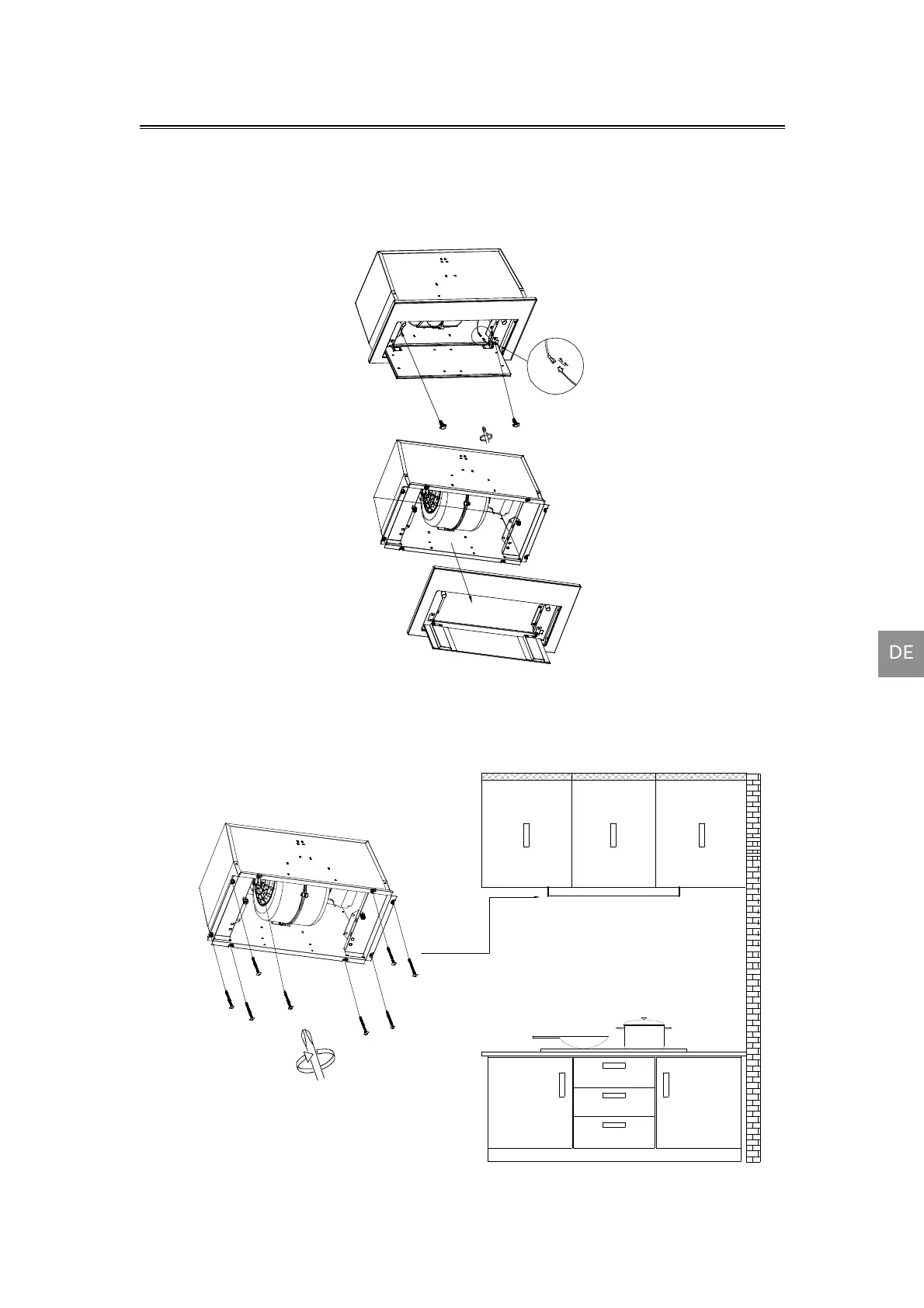 6) Setzen Sie die Dunstabzugshaube in das rechteckige Loch im Schrank