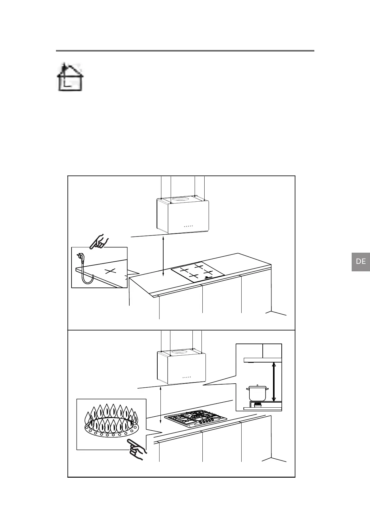 Erforderliche Höhe über Elektrokochfeld: 650 mm.