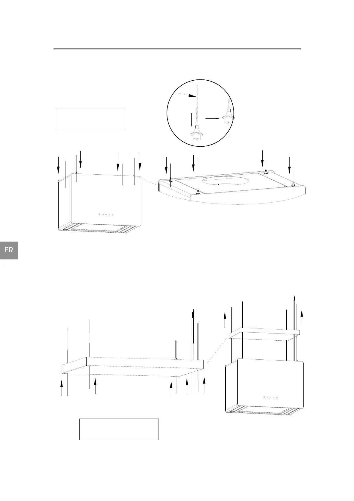 5) Passez les quatre câbles d'acier par le support de câble de la hotte.