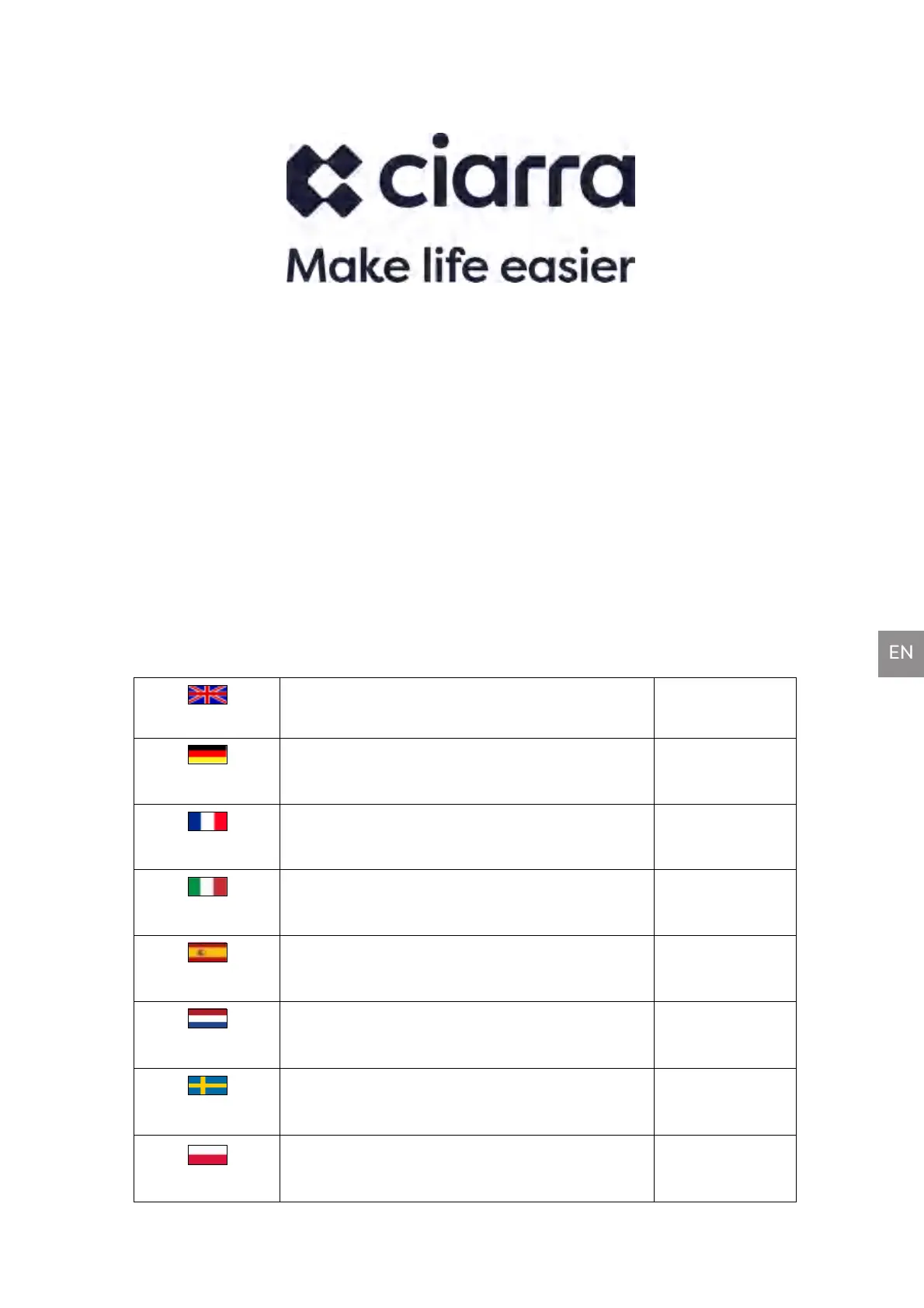Bekijk gratis de handleiding van Ciarra CD4850S, stel vragen en lees de antwoorden op veelvoorkomende problemen, of gebruik onze assistent om sneller informatie in de handleiding te vinden of uitleg te krijgen over specifieke functies.