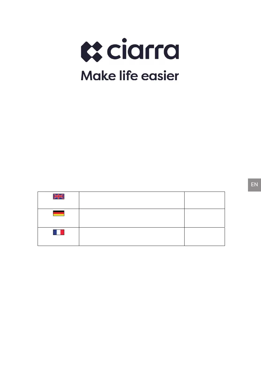 Bekijk gratis de handleiding van Ciarra CD4BIH-D, stel vragen en lees de antwoorden op veelvoorkomende problemen, of gebruik onze assistent om sneller informatie in de handleiding te vinden of uitleg te krijgen over specifieke functies.