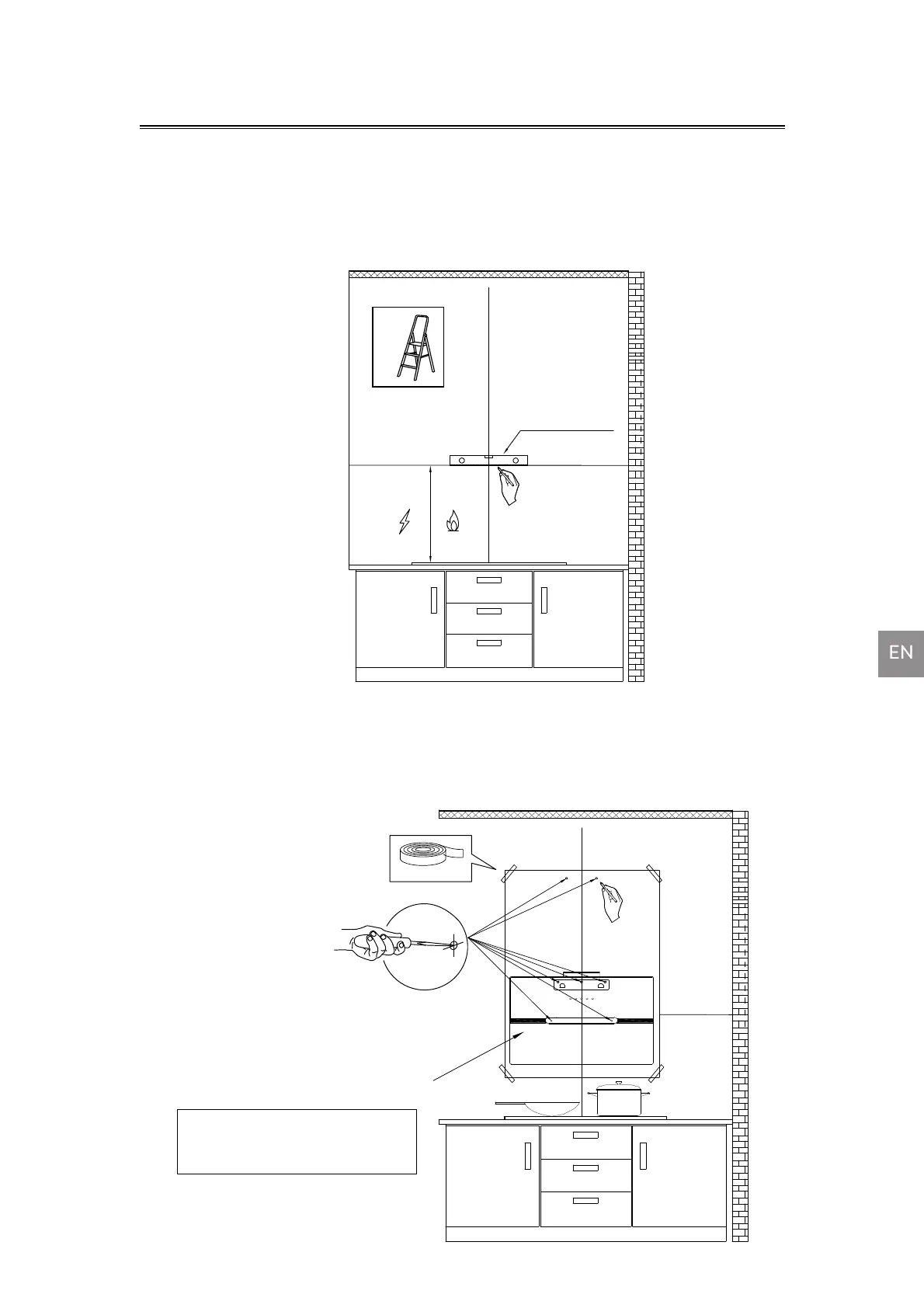 Installation Diagram with the horizontal line on the wall, then tape