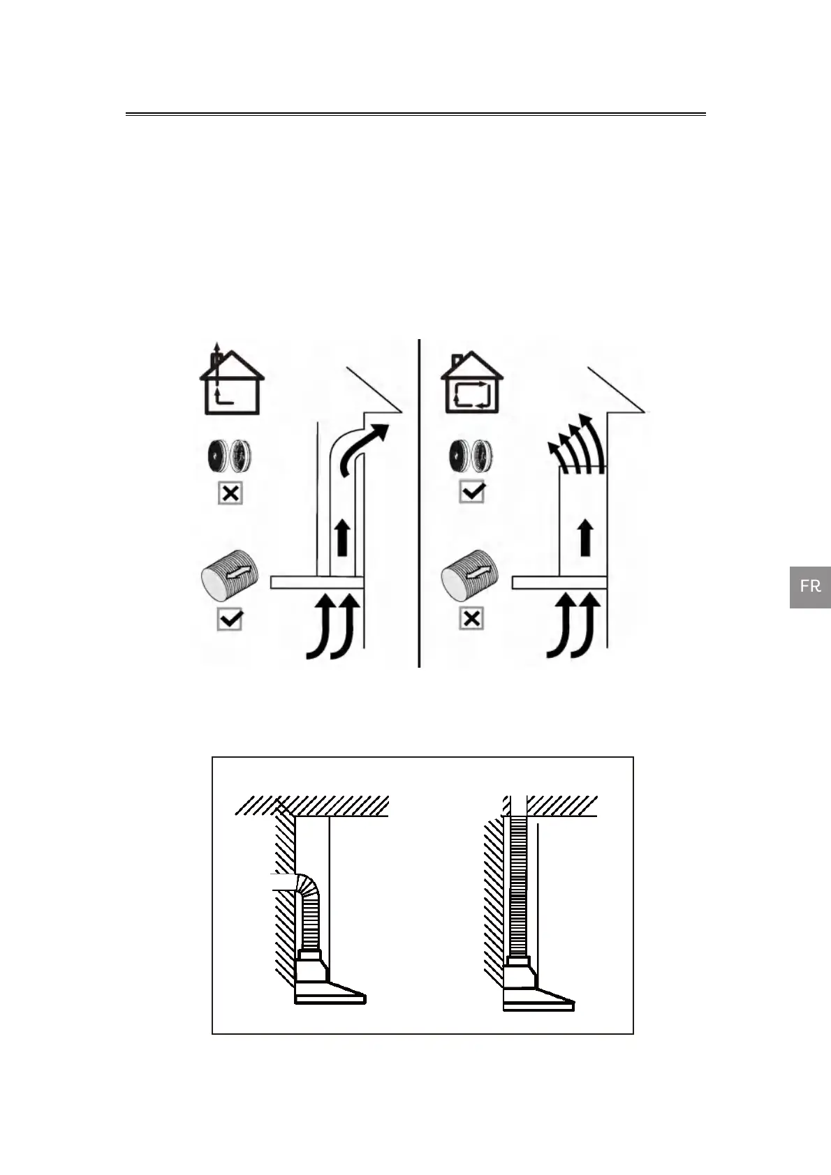 b) Utilisez au moins 60cm de tuyaux d’évacuation direct avant tout