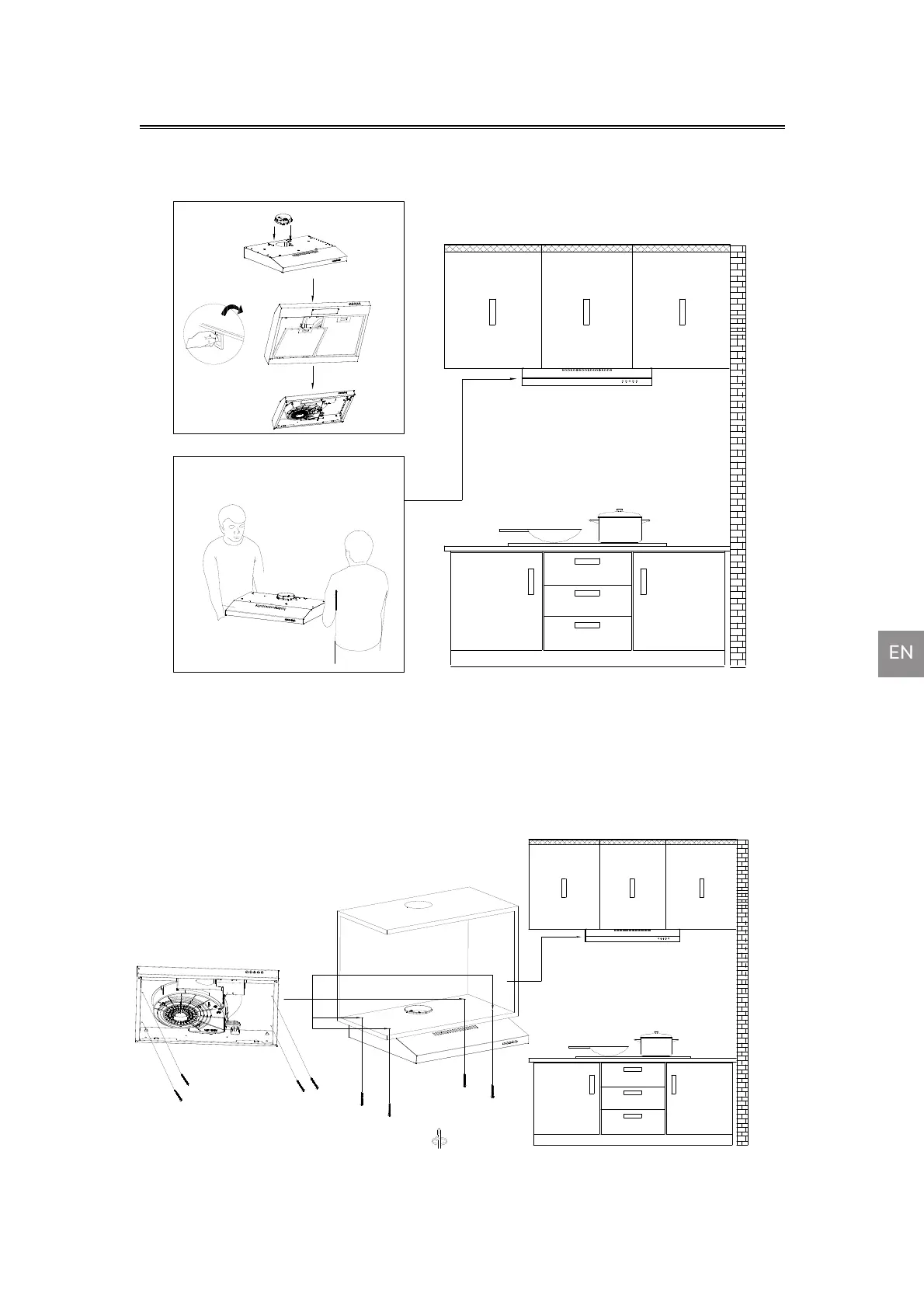 filter, then put the cooker hood under the cabinet.