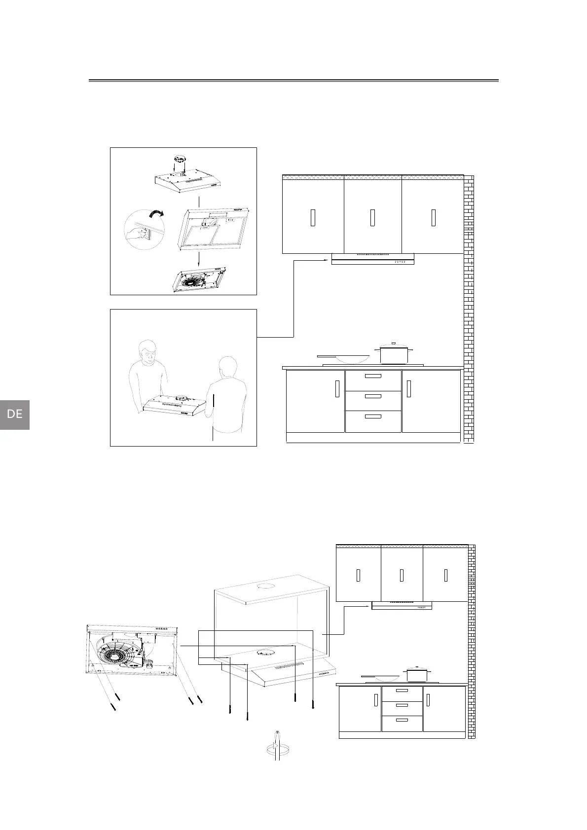 stellen Sie die Dunstabzugshaube unter den Schrank.