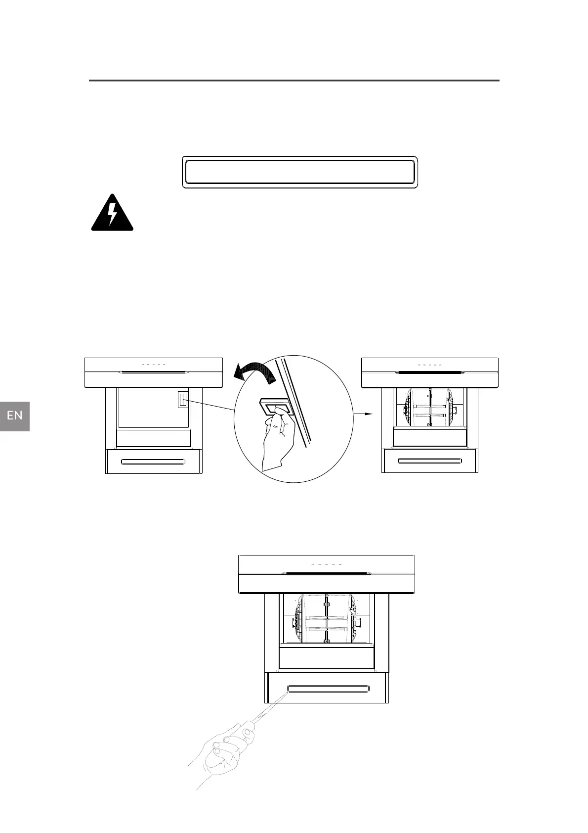 1. Turn off the hood and unplug the power outlet. Detach the grease