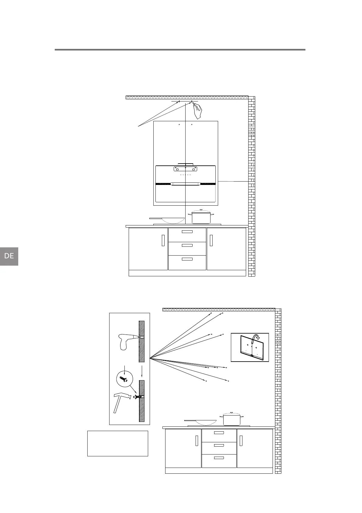 6) Entfernen Sie das Installations Diagramm, bohren Sie die Löcher, die