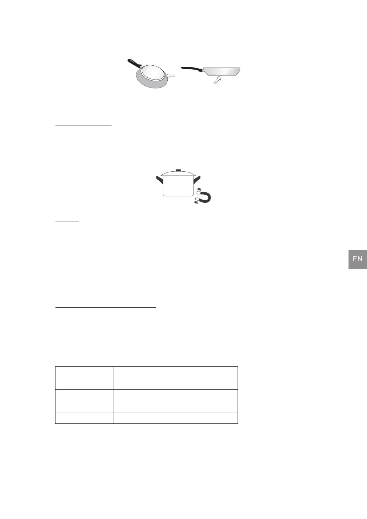 To achieve a good cooking result, the ferromagnetic area on the base of