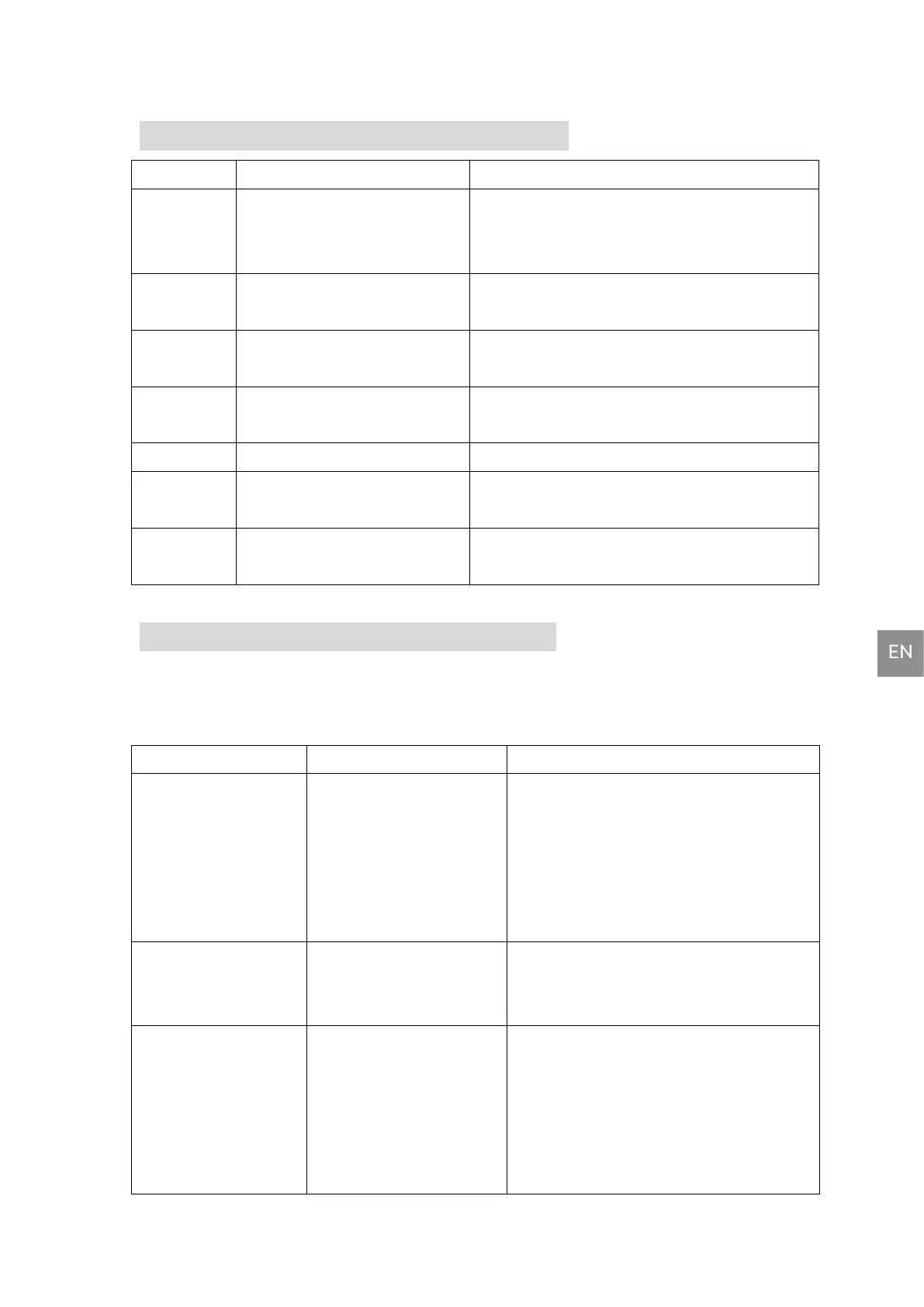 In case of any errors during operation, please check the following table