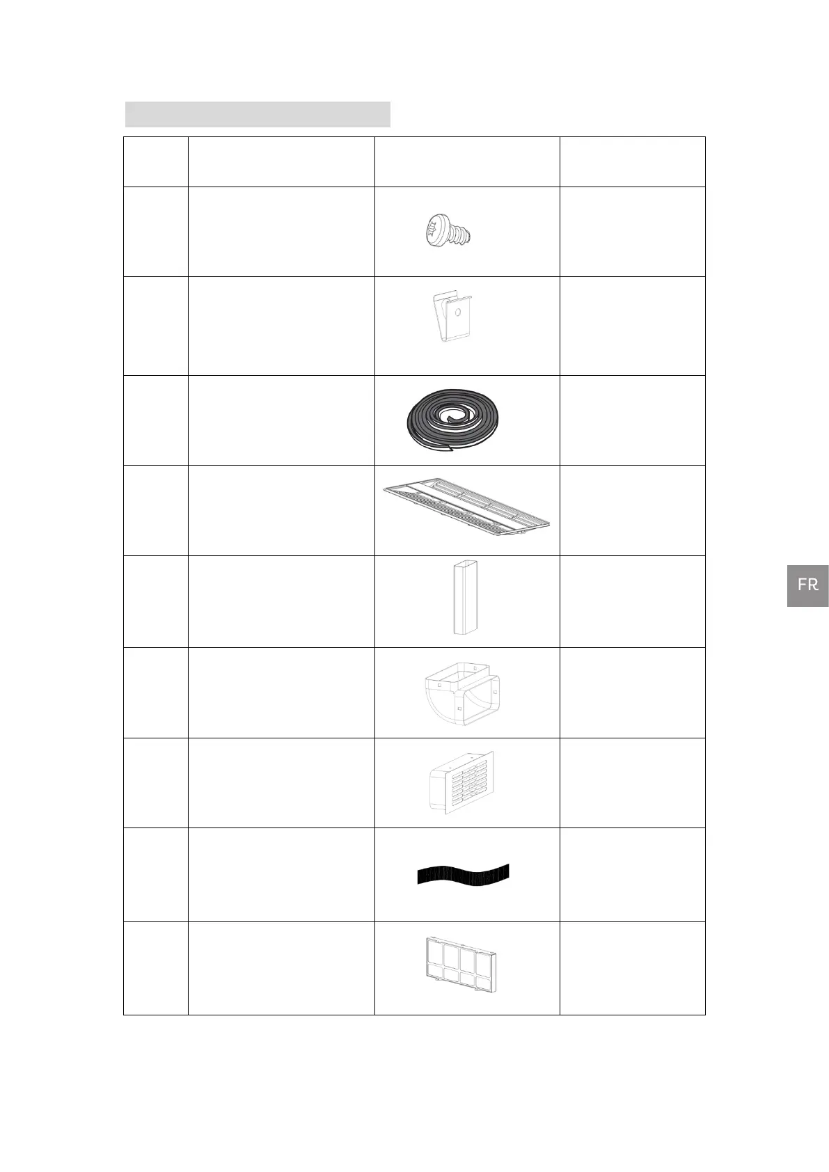 LISTE DES ACCESSOIRES