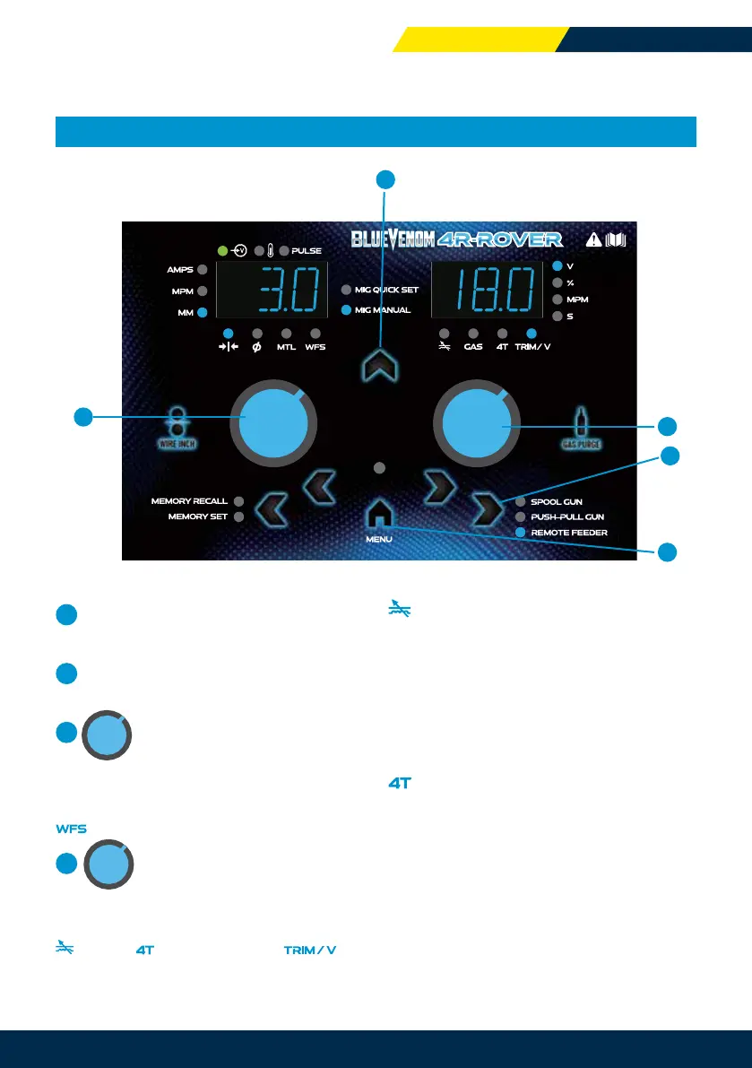 PRESS TO STEP THROUGH AND SELECT OPTIONS IN MIG