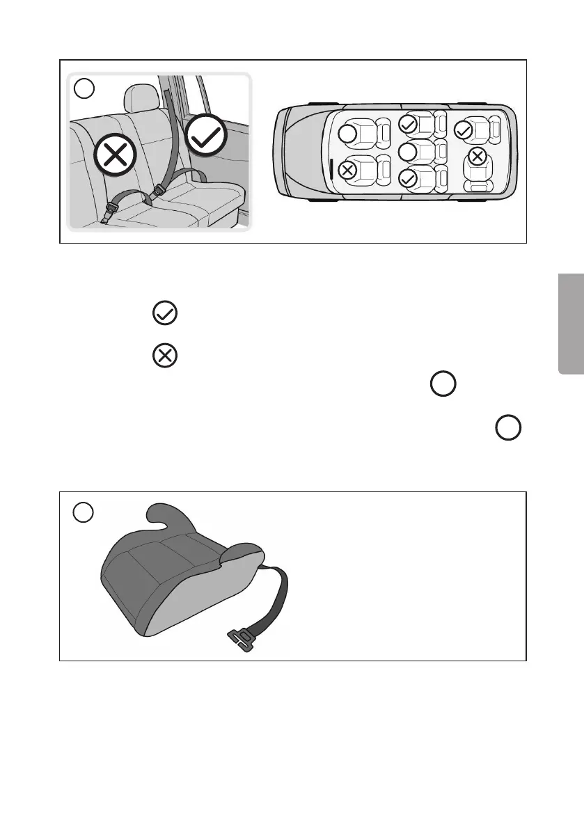 • Bilputen skal kun brukes på disse setene dersom 3-punkts belte er tilgjengelig.