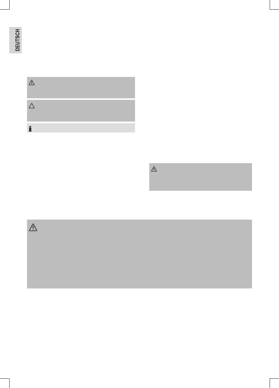 Wichtige Hinweise für Ihre Sicherheit sind speziell gekenn-
