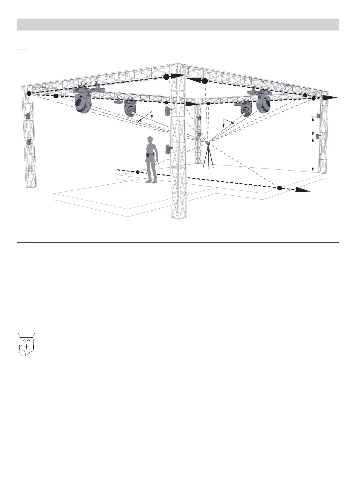 B’: Reference point (x direction) on the truss on which the LIGHTING FIXTURE is mounted, to be measured with the Leica laser distance meter