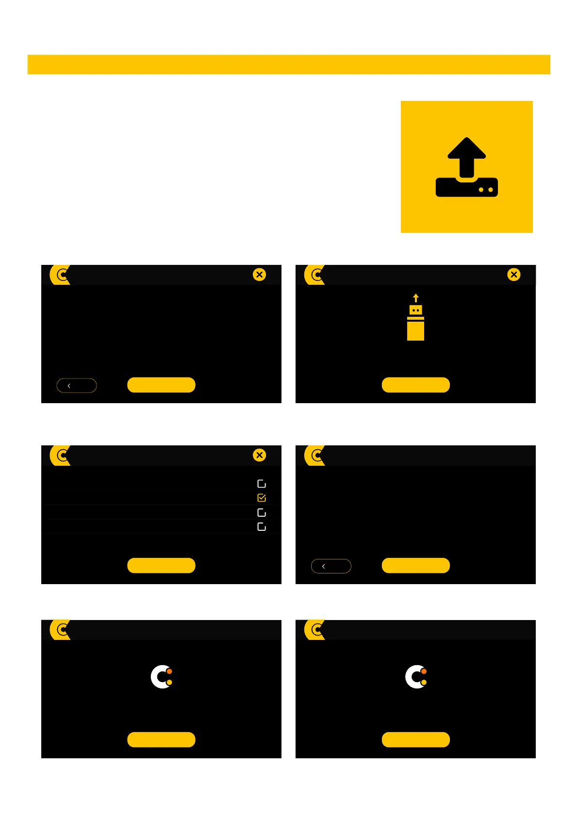USB KEY and press CONTINUE in order to activate the update procedure: