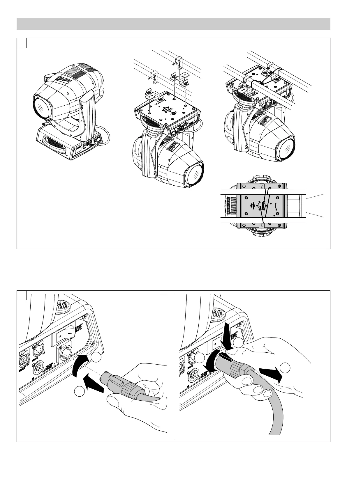 This must be securely fixed to the support structure of the projector and then connected to the fixing point at the centre of the base.