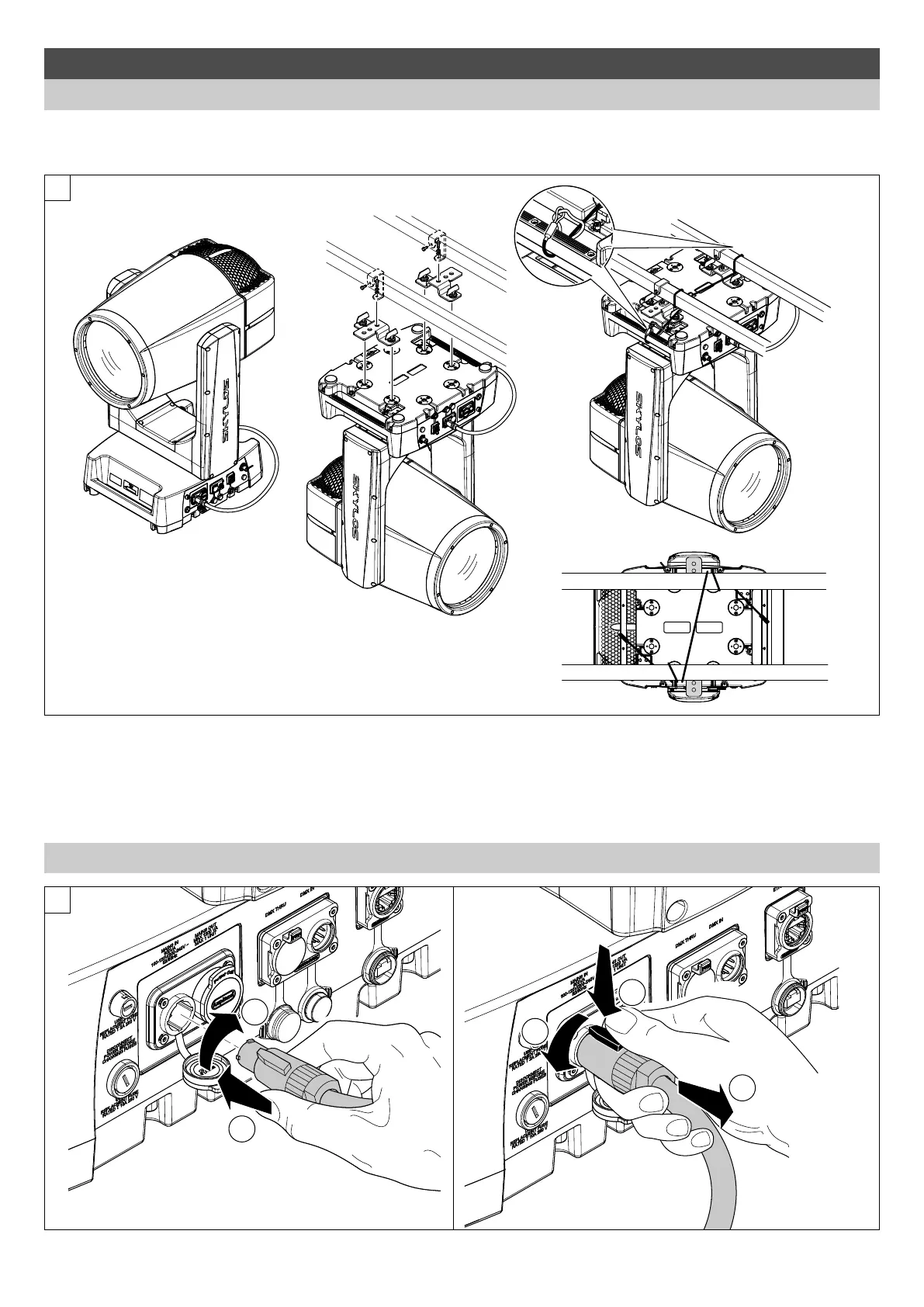 request). These must be securely fixed to the support structure of the luminaire and then connected to the two fixing points on the base.