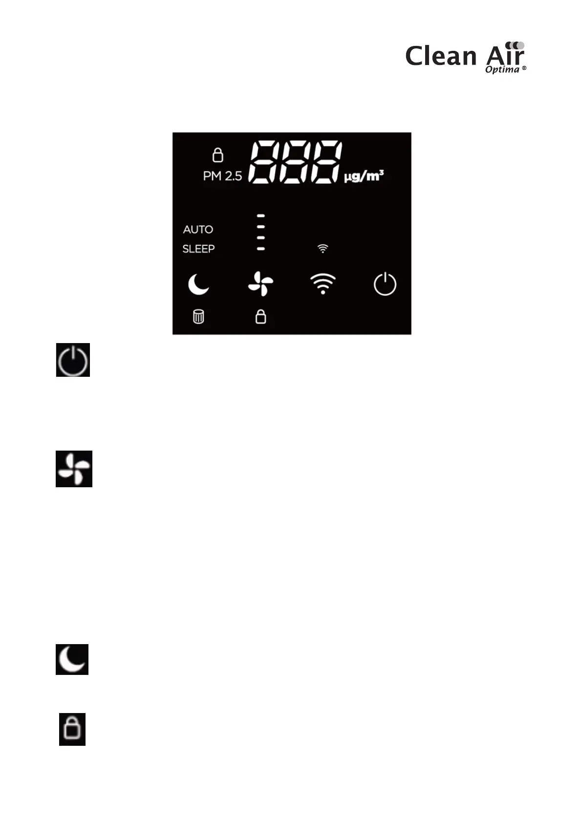 speeds available. You can choose the auto mode, speed 1, 2, 3 or 4. Touch the fan