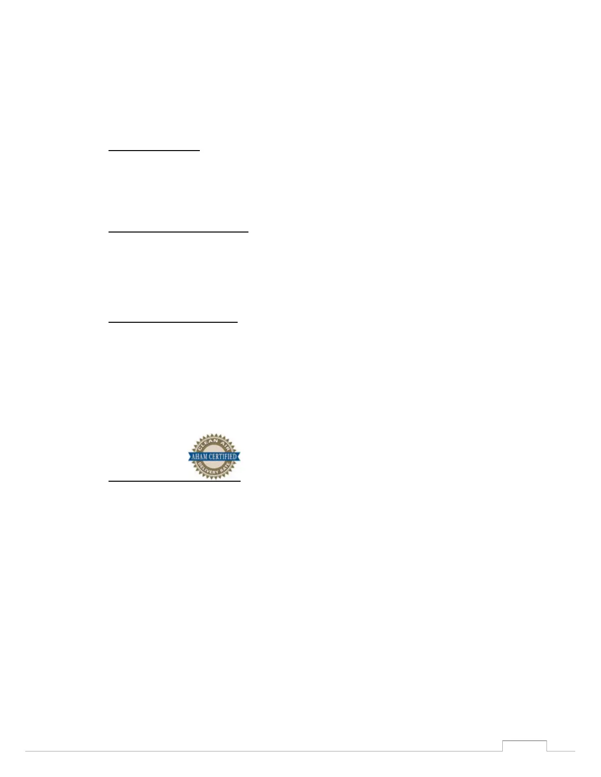 AHAM, gevestigd in de VS, geeft zekerheid aan de gebruiker dat de Clean Air Delivery Rate (CADR)