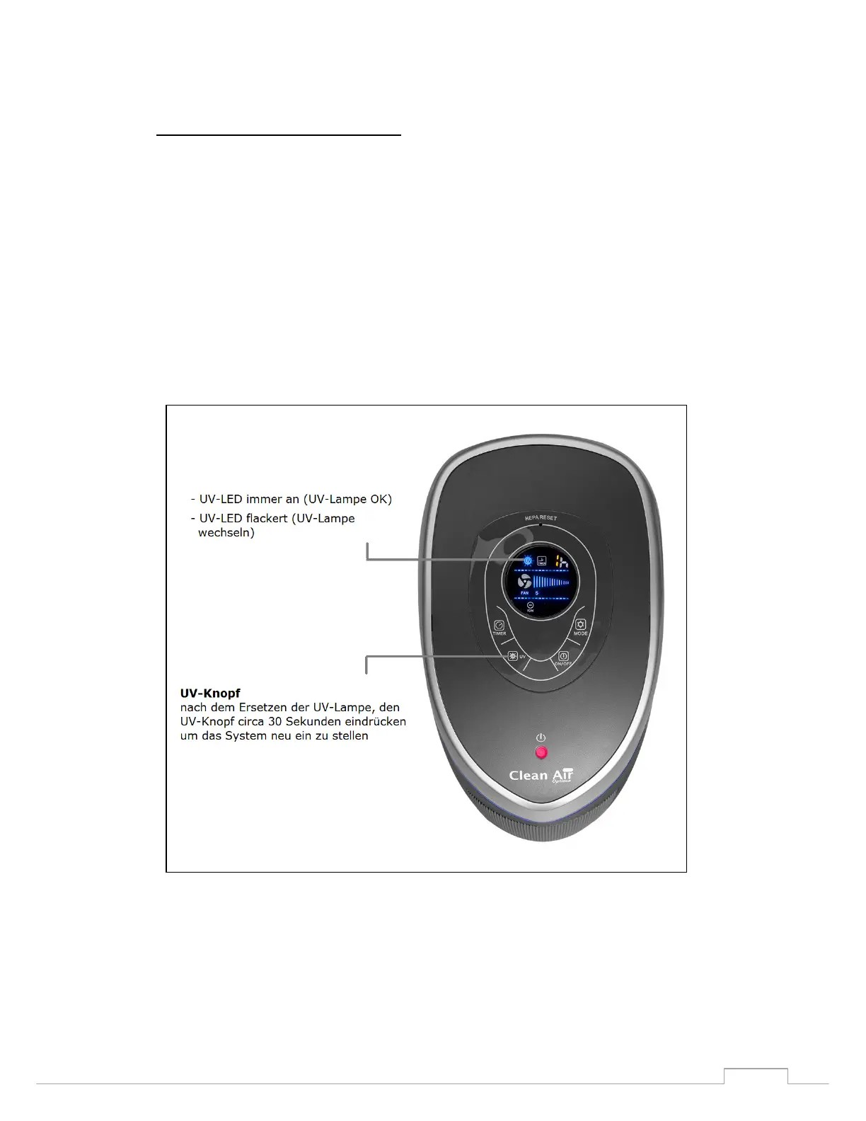 UV-Lampe zu wechseln. Starten Sie den Luftreiniger neu, indem Sie das Gerät neu stellen: drücken