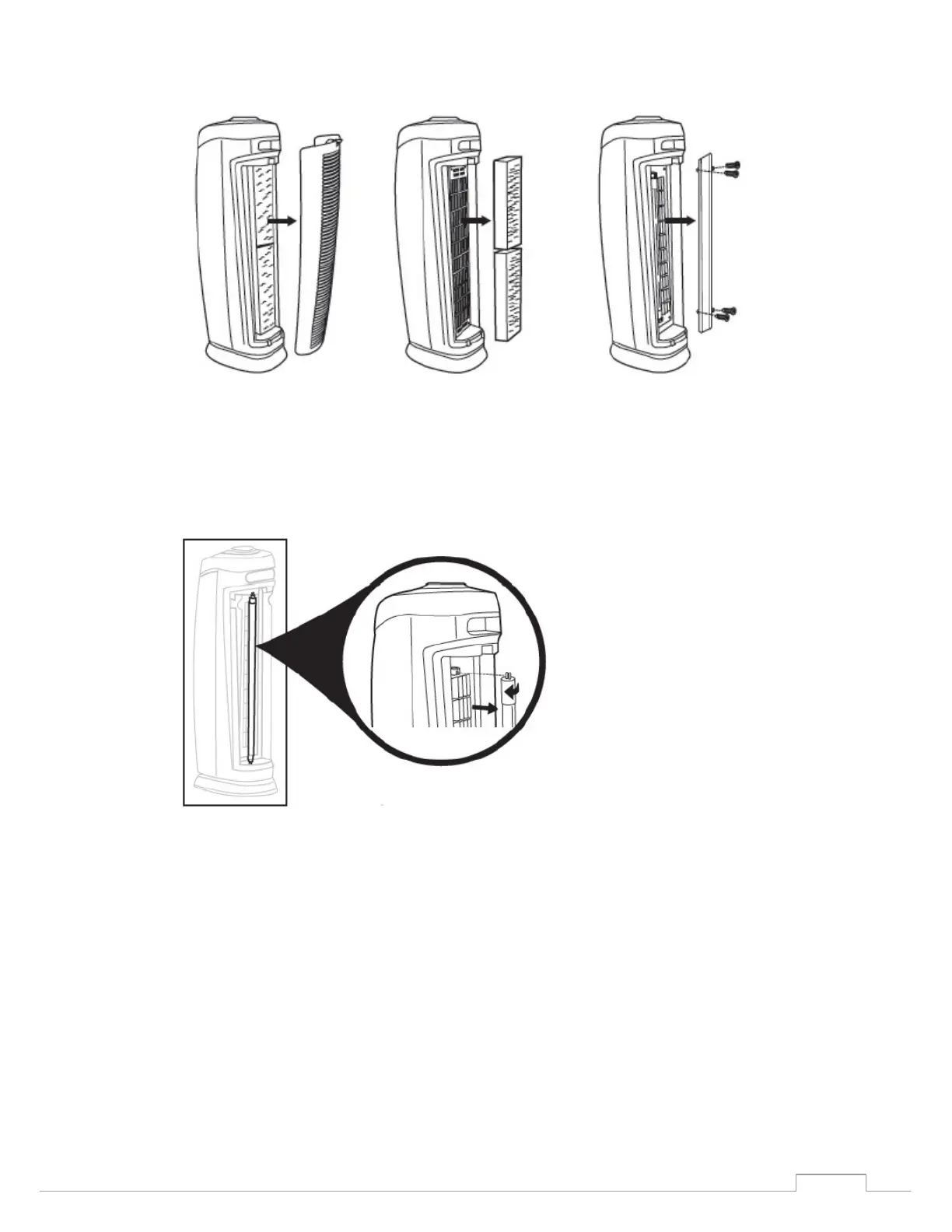 6. Přemístěte UV-C lampu horizontálně tak, že vložíte kolíky (horní a dolní) do zdířek a otočíte lampou o ¼