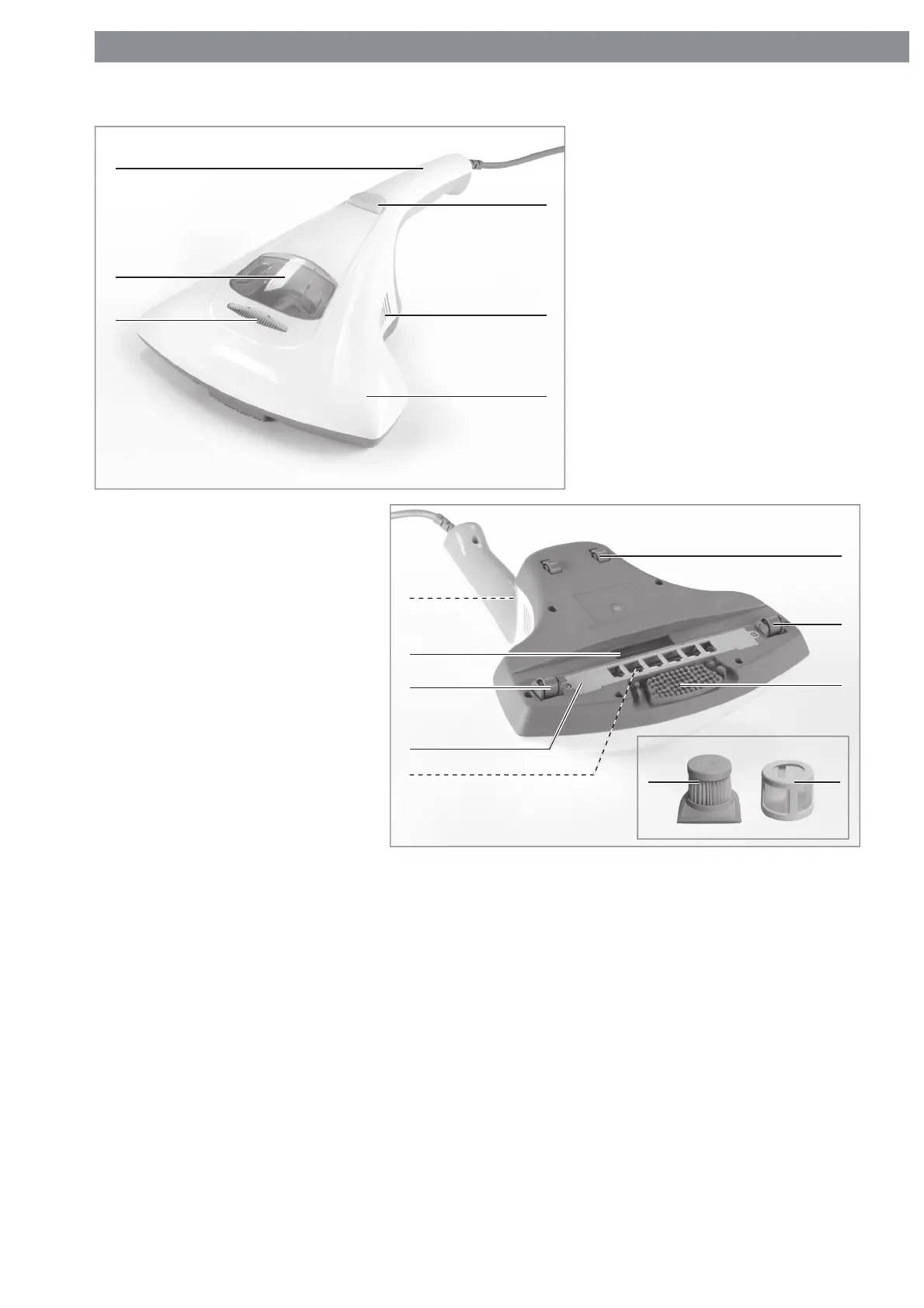 Das Gerät verfügt über zwei Sicherheitsschalter (8, 12). Die UV-C-Lampe (10) schaltet