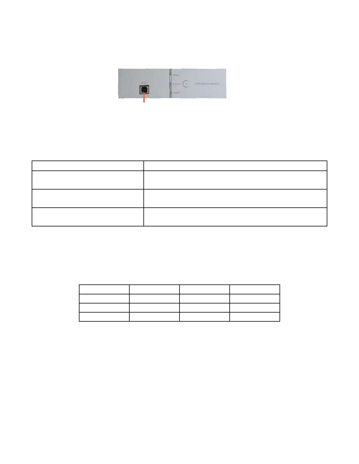 The CONVERGE Matrix Status LED’s on the front of the unit give indications of the processes and
