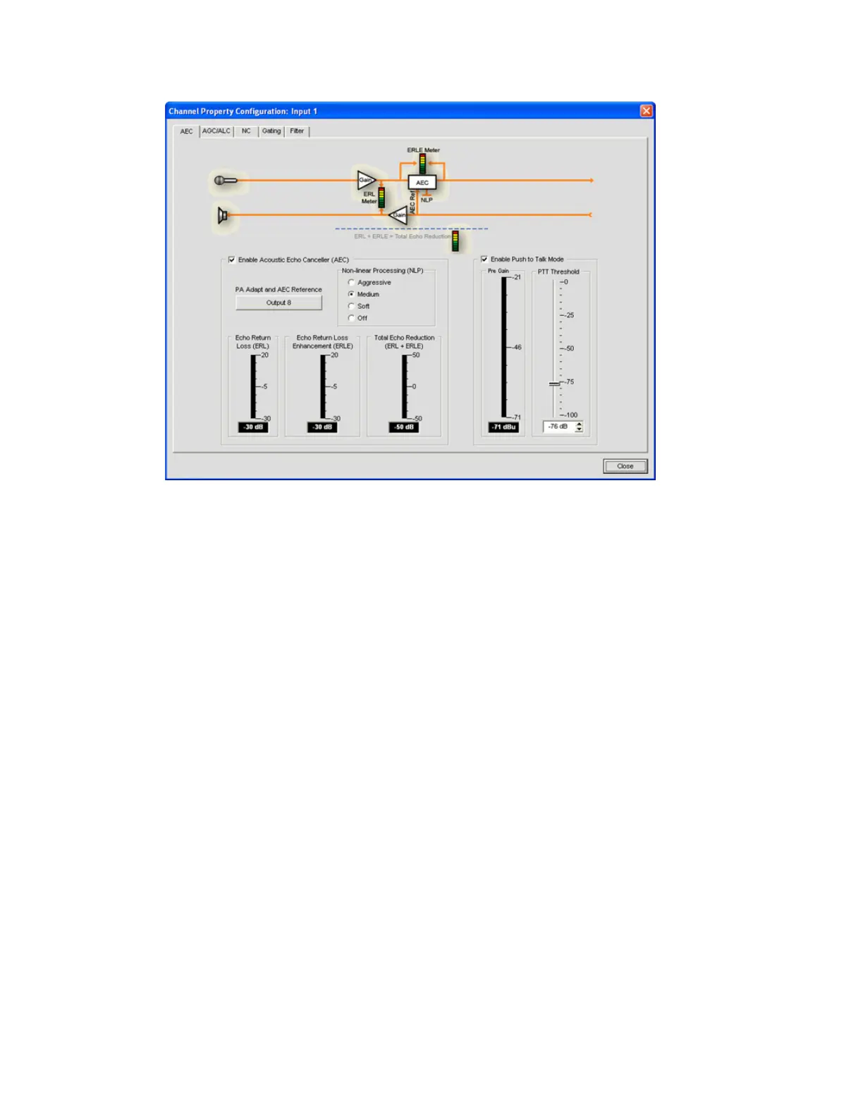 channel. Clicking the button closes the Channel Property Configuration window and opens the AEC