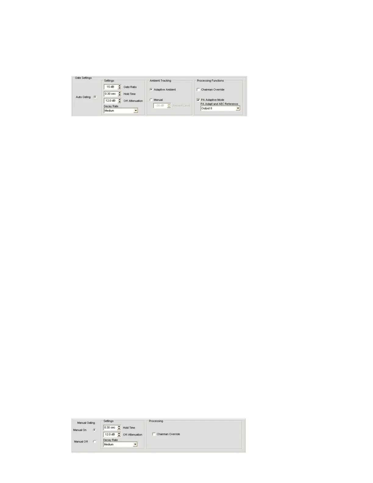 • Gate Ratio: Specifies how much louder than the ambient level the audio level must be before the channel