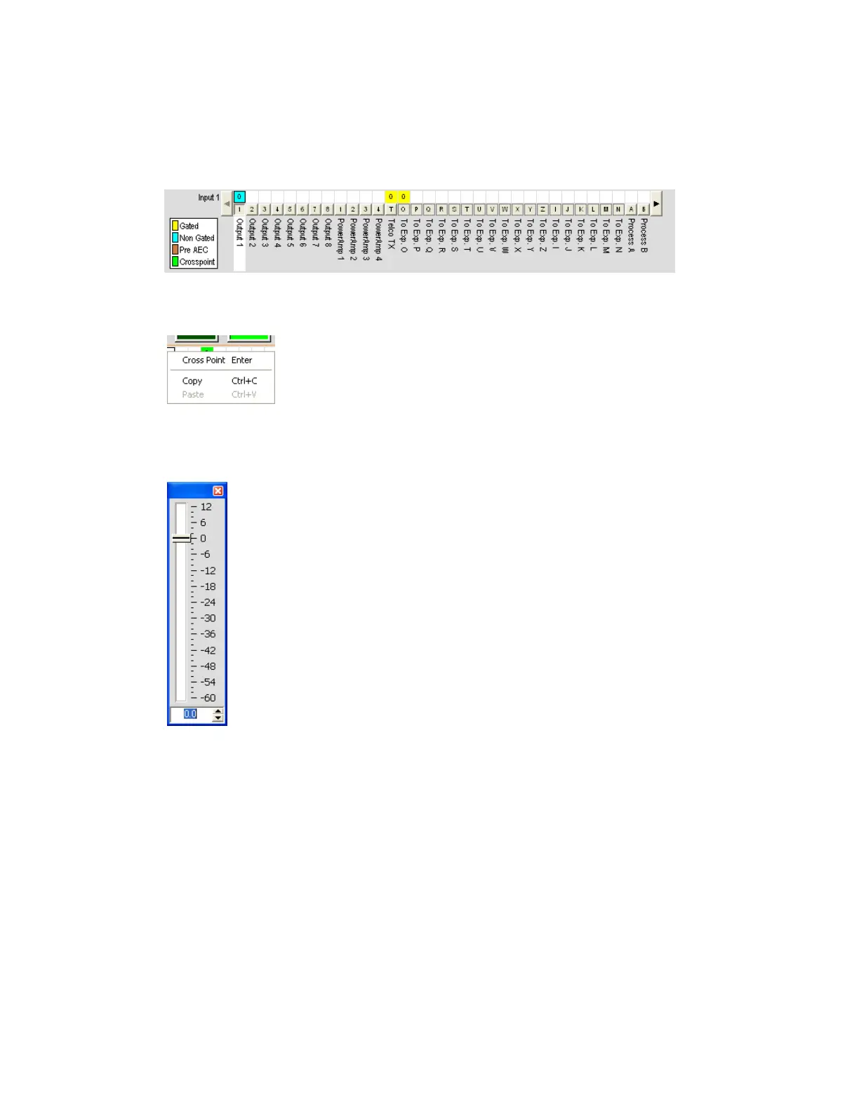 To adjust cross point gain/attenuation, right-click on a cross point box and select Cross Point from the shortcut