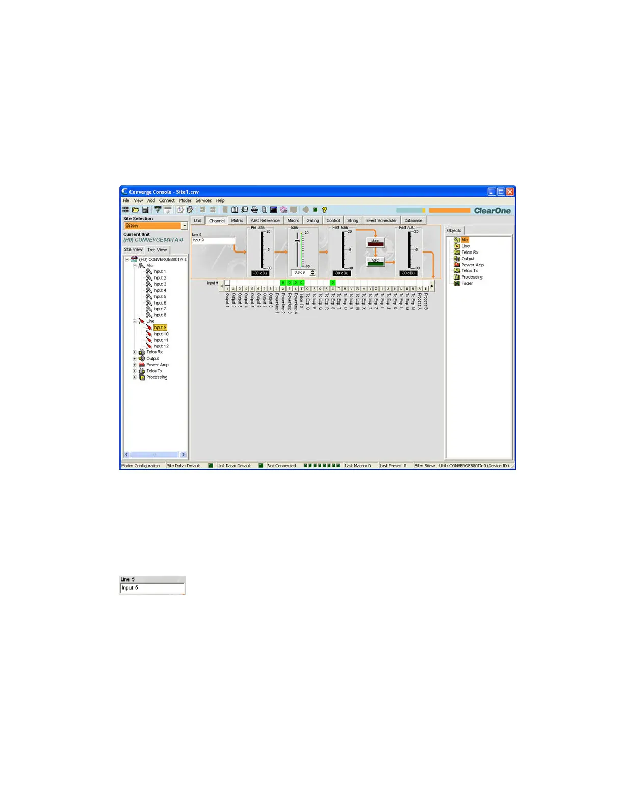 With the Channel tab selected on the Tab Bar, select the desired line input channel on the Tree View tab in the
