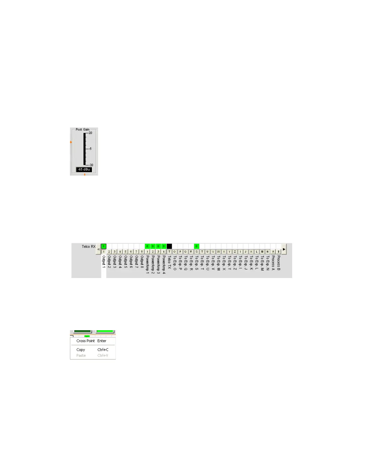 it a second time sets the cross point, as indicated by a green box. The dB level for set cross points is shown