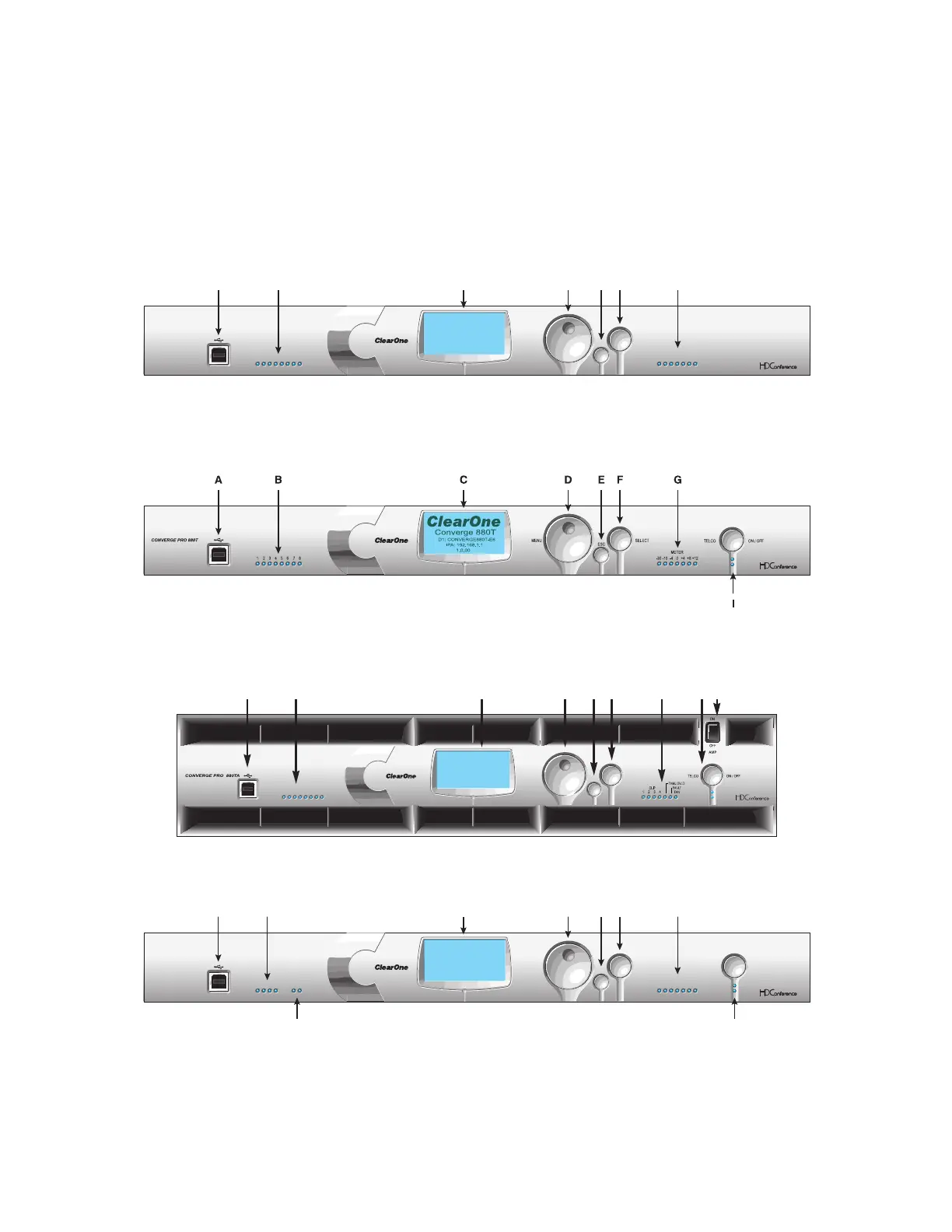 Refer to the following diagrams and descriptions for CONVERGE Pro front panel controls and back panel