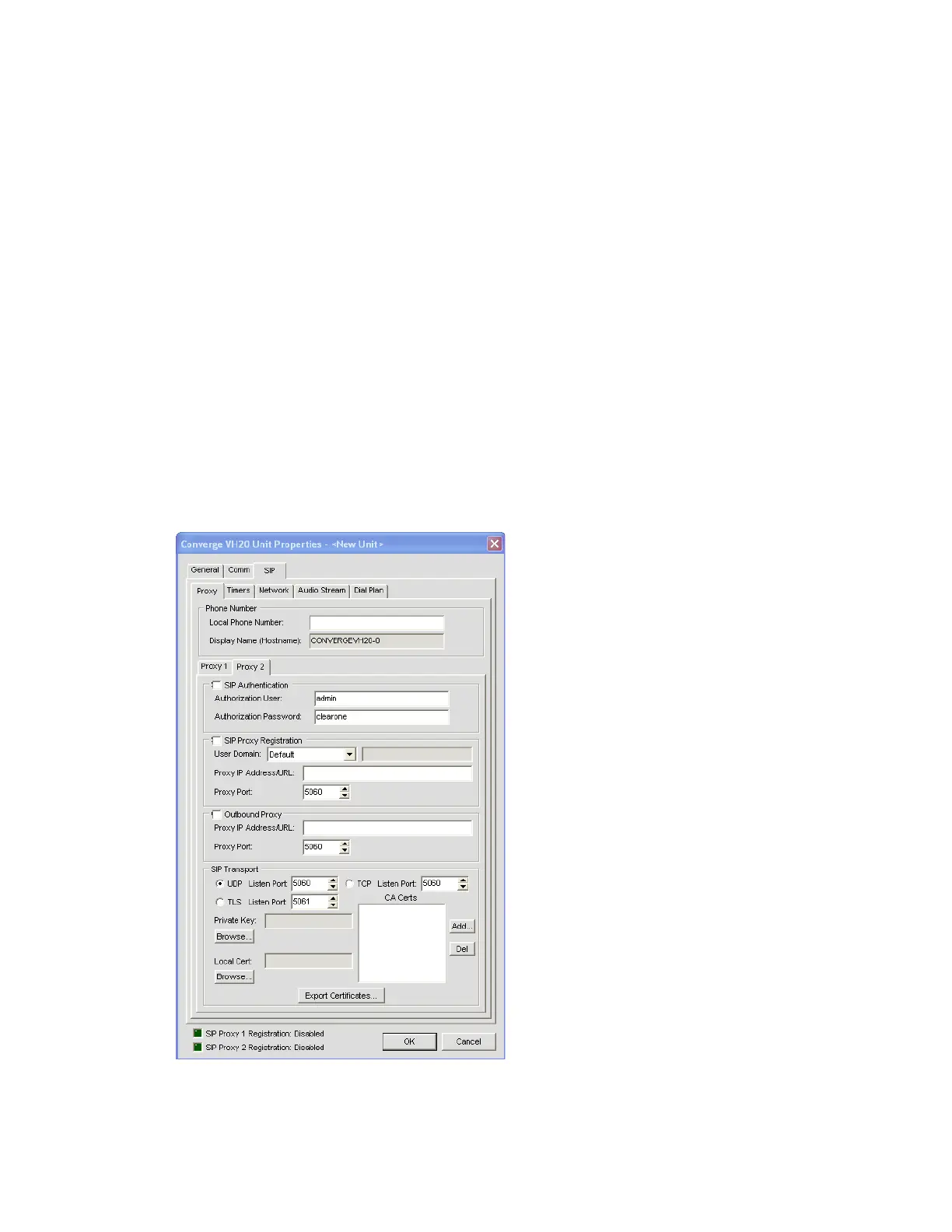 NOTE: The SIP Properties window is also accessible by right-clicking the VH20 icon under