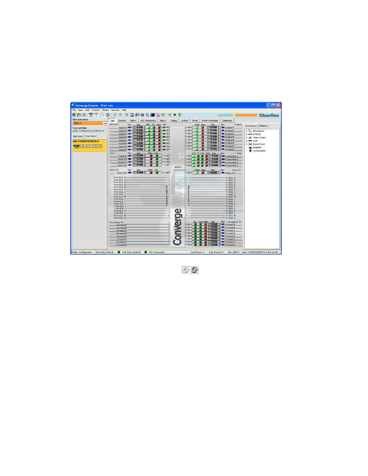 CONVERGE Console has two modes: Configuration Mode (default) and Preset Mode. Configuration Mode
