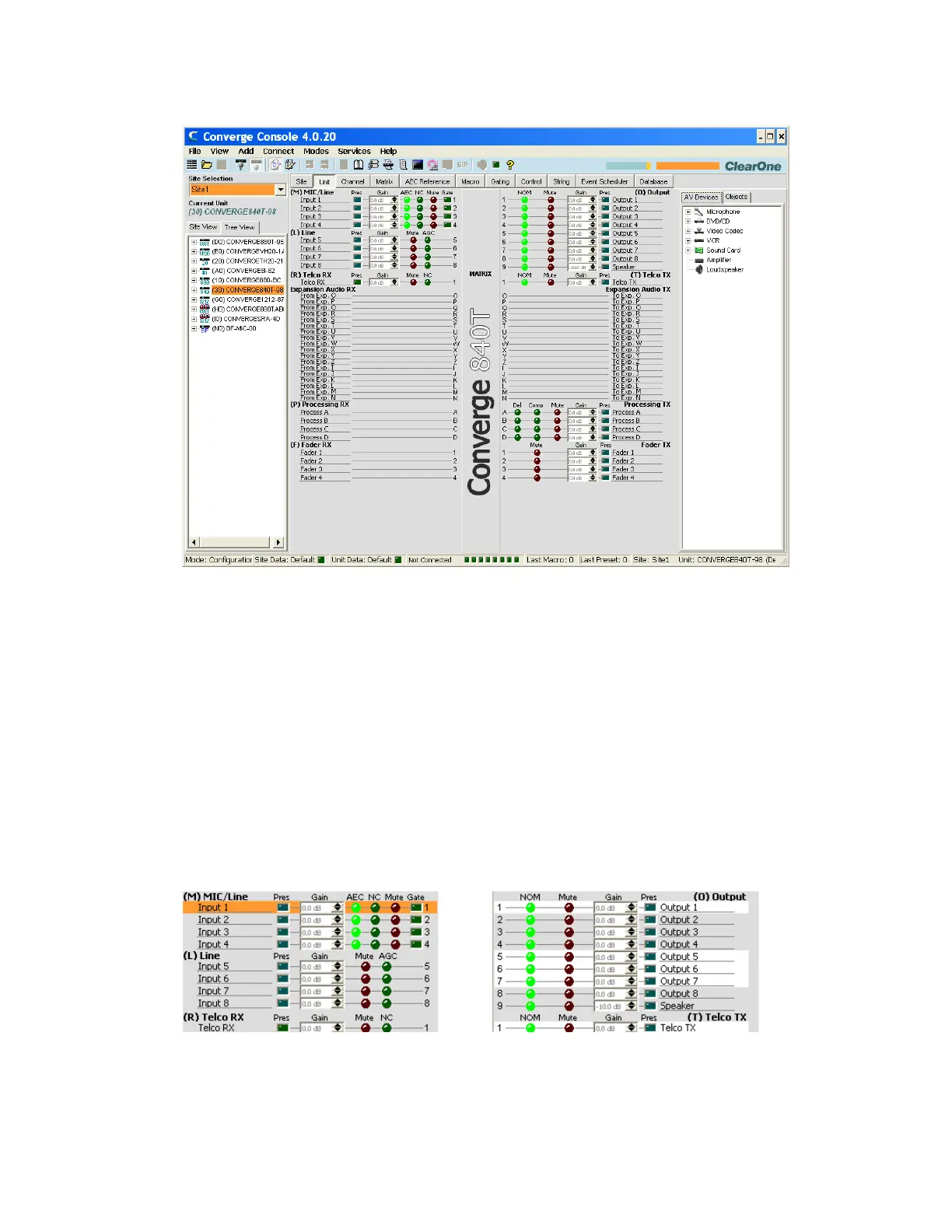 NOTE: The Unit tab shown above is for an 880AT with the Tree View tab selected in the Site