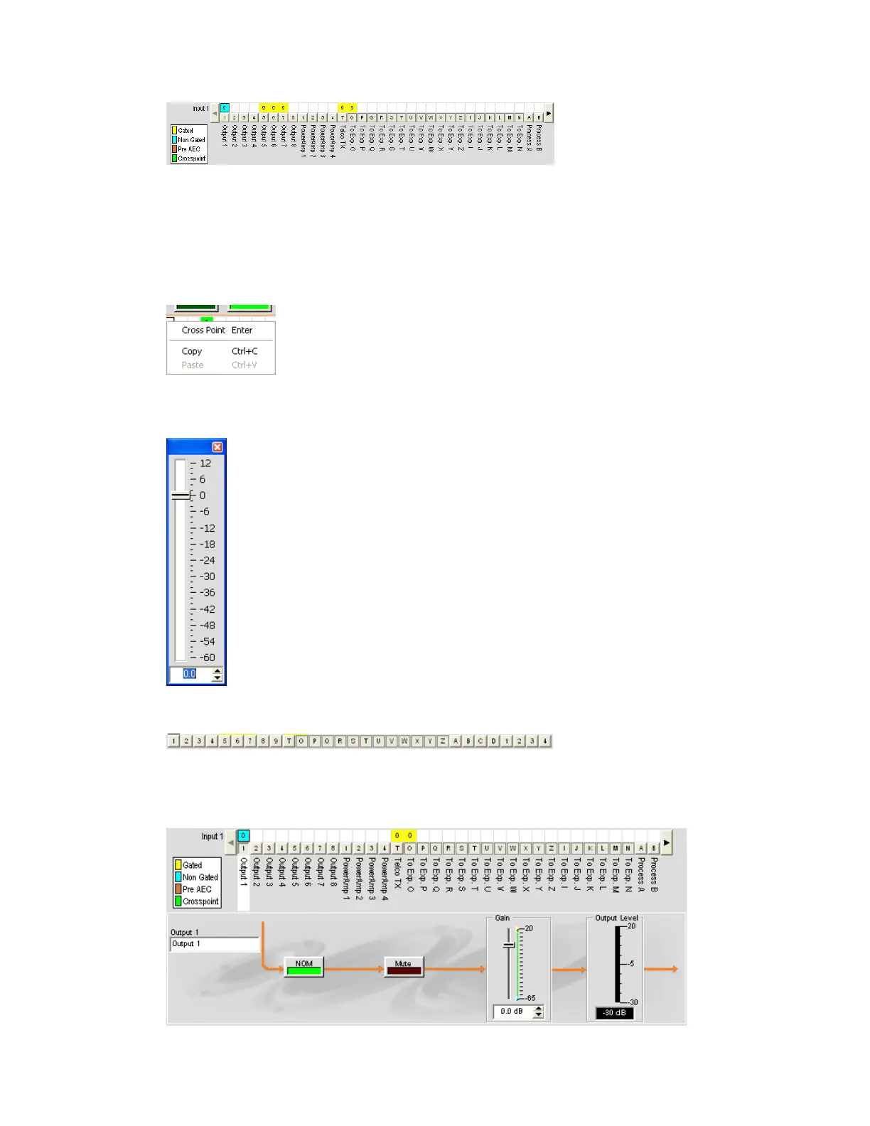The dB level for set cross points is shown numerically in the box. To adjust cross point gain/attenuation, right-click