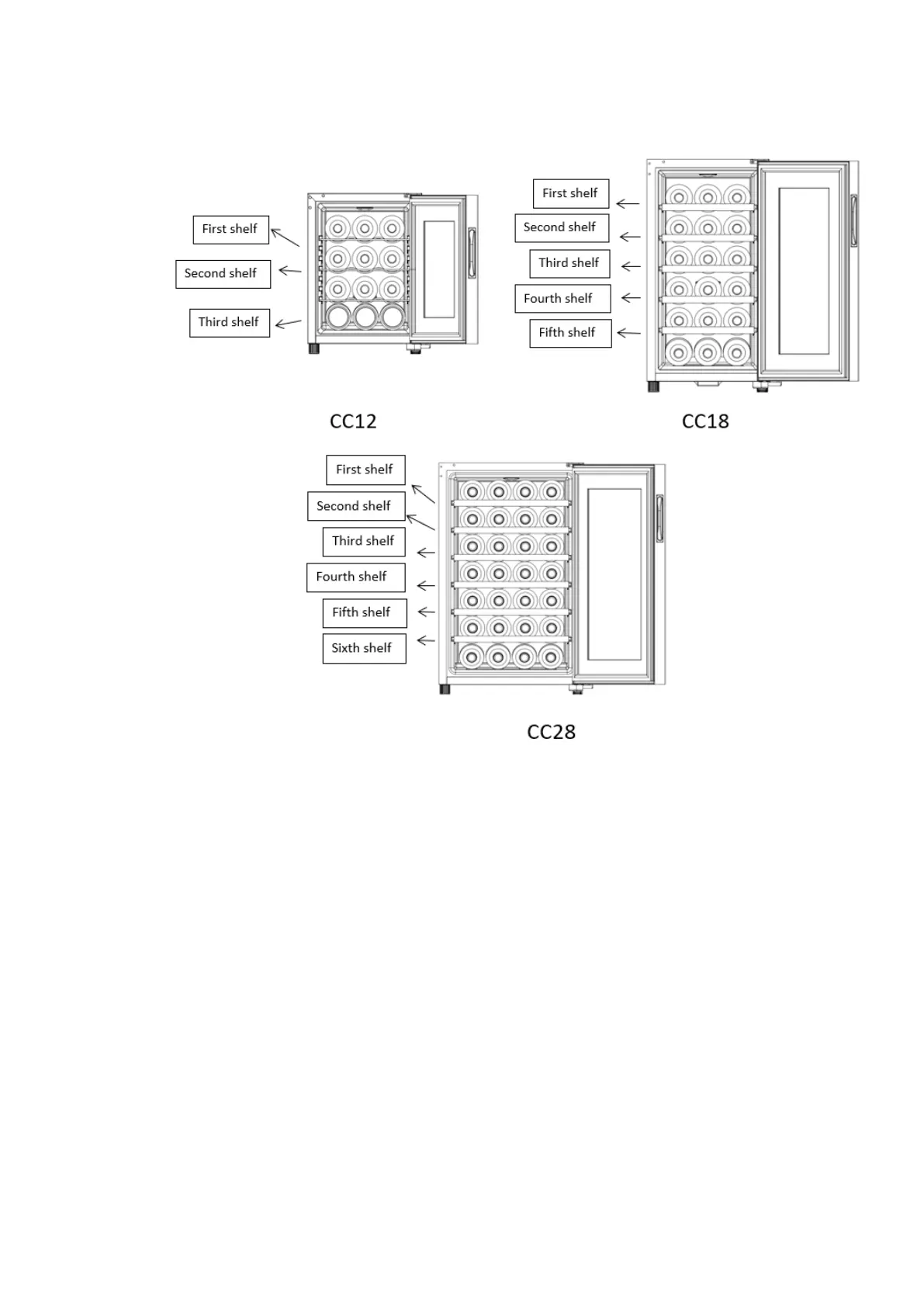 ▪ The following combination of shelves is recommended for energy to be used as efficiently as possible