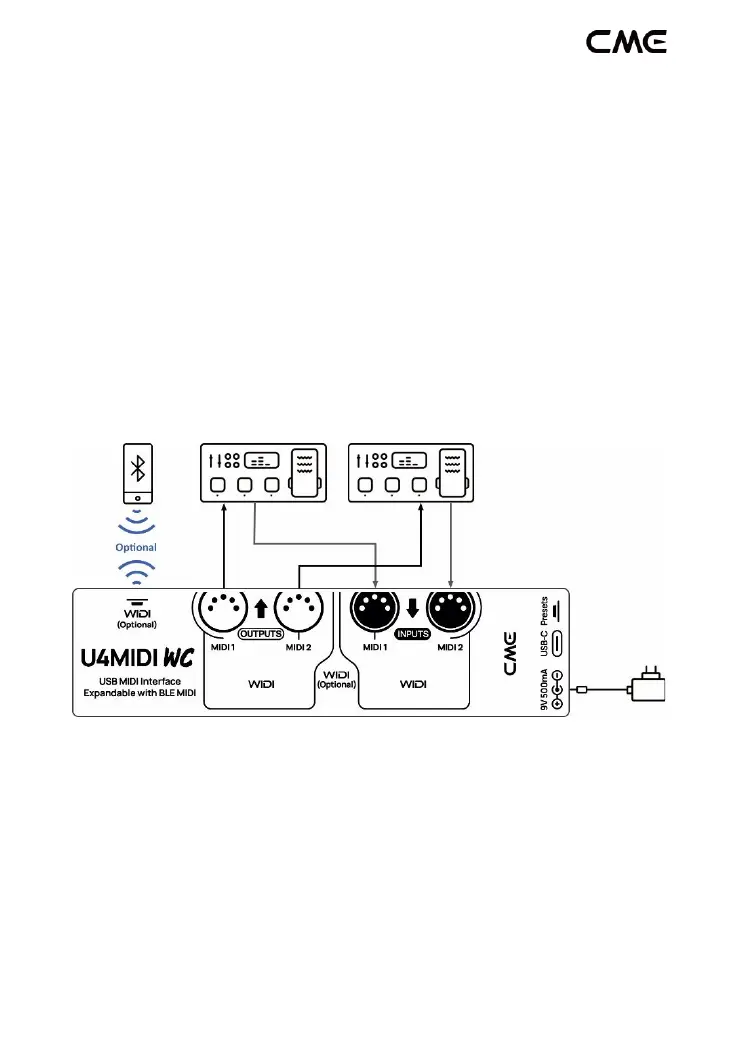 3. When the power is on, the LED indicator of U4MIDI WC will light up