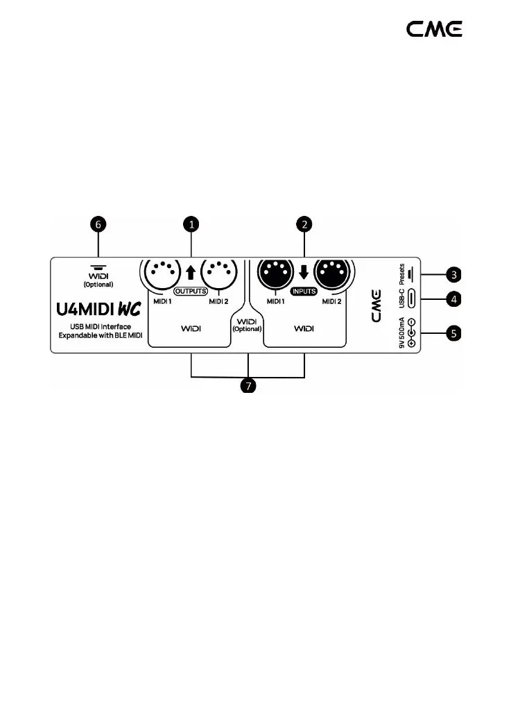 - These two MIDI OUT ports are used to connect to the MIDI IN port of