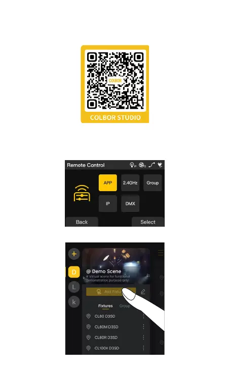 ② Open theCOLBOR STUDIO APP, click “Add Fixture".