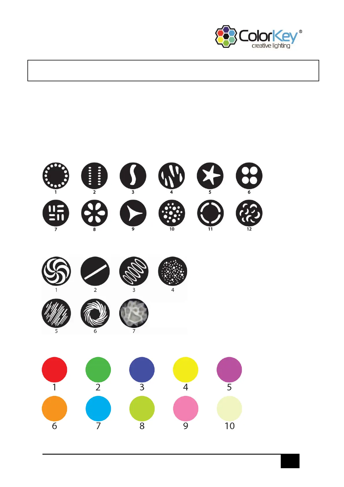 gobos + open and 1 textured glass gobo with rotation control. The color wheel offers 10