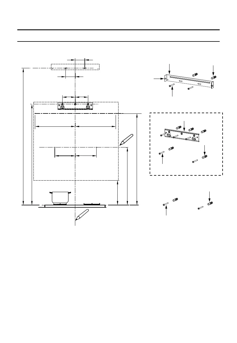 A horizontal line C at a minimum 717 mm above the cooker top.